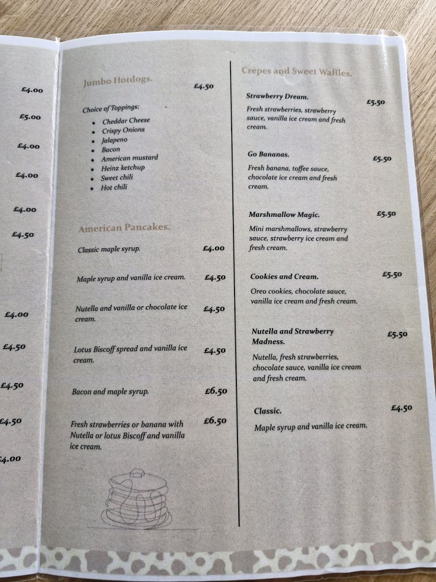 The Milky Bar doesn’t just stop at milkshakes, though. Their menu also features delightful offerings like American pancakes drizzled with classic maple syrup for only £4.00—a delightful breakfast option any time of the day. If you’re in the mood for something sweet yet substantial, you certainly shouldn’t miss out on their Crepes and Sweet Waffles, featuring tantalizing combinations such as Strawberry Dream and Marshmallow Magic, each priced at just £5.50.